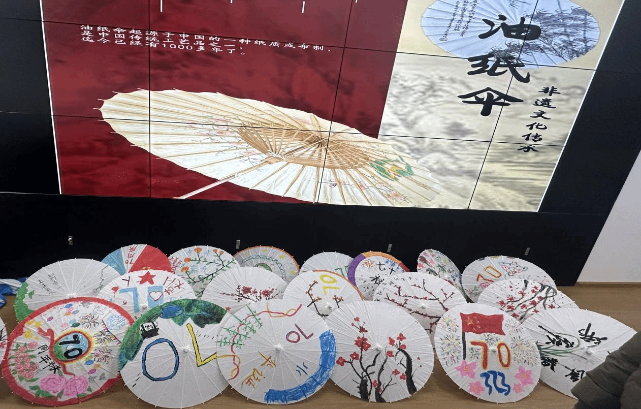创作完成后,百余把手绘雨伞在校园长廊集中展示,每把雨伞都承载着创作者的巧思与对学校的祝福,成为一道移动的艺术风景线。这些兼具实用性与观赏性的作品,让艺术真正融入日常生活。