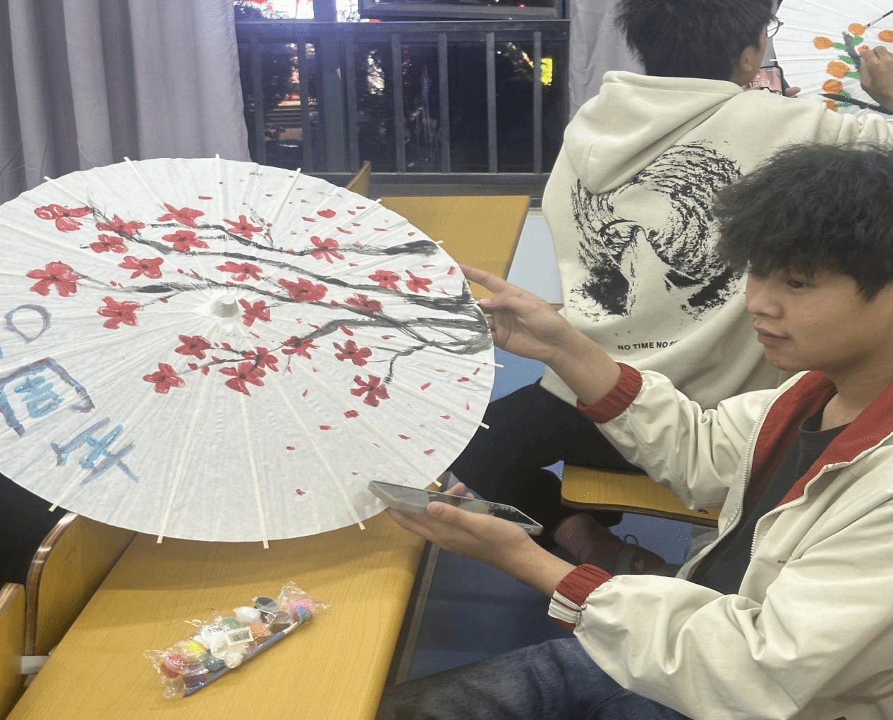 为庆祝建校70周年,丰富师生文化生活,一场以“伞下绘梦·异彩纷呈”为主题的手绘伞面创意活动于12月10日晚顺利举办,全院师生踊跃参与,用色彩与创意为校庆增添了别样光彩。