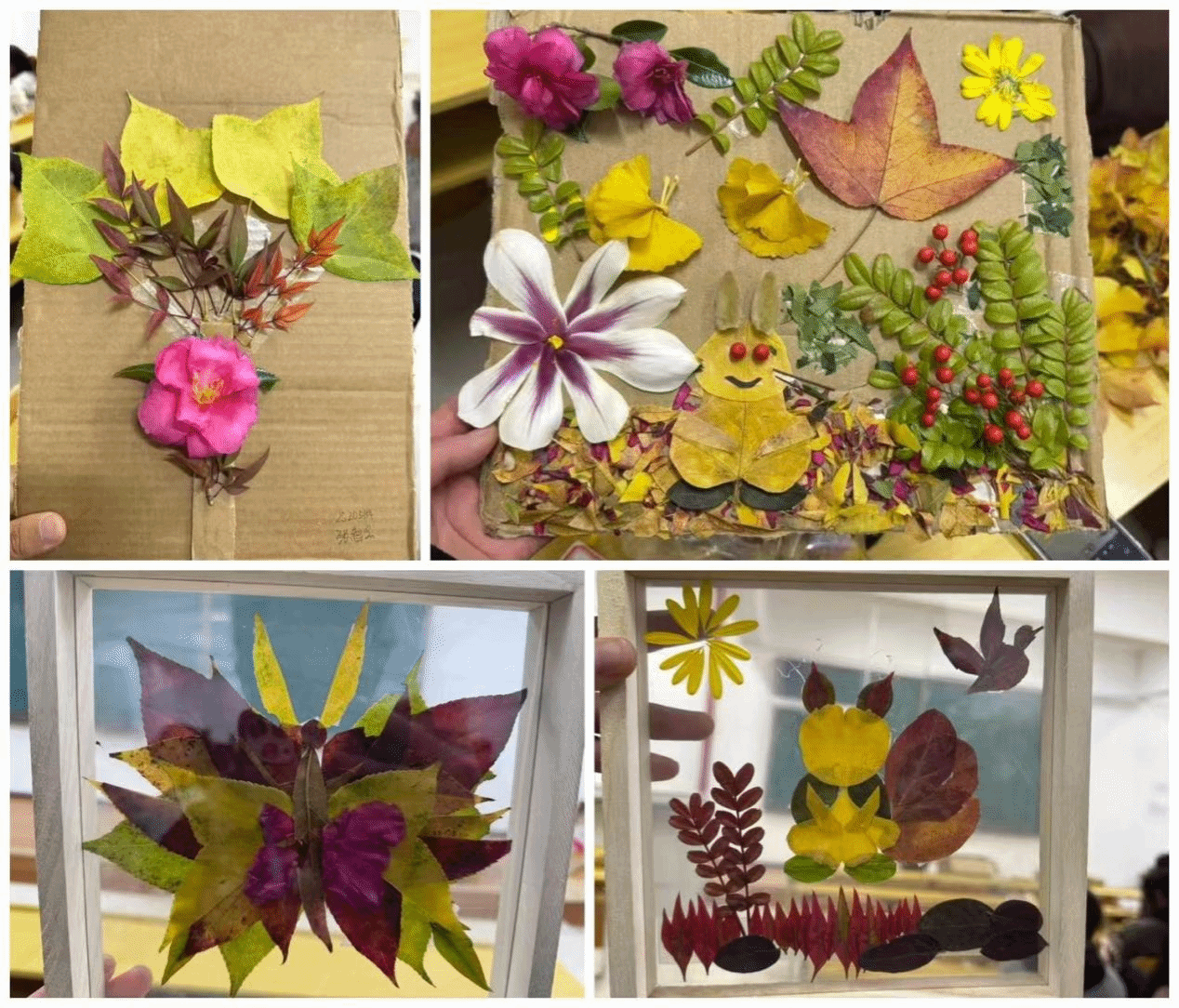 成果分享阶段,一件件饱含巧思的作品整齐陈列,参与者们自愿用一句话分享创作初心,“银杏叶的金黄是秋日最暖的底色”“枯枝与干花的碰撞,是自然的诗意”,简单的话语传递着对秋日的独特感悟。现场还评选出“最受欢迎作品”并颁发礼品,最终全体参与者合影留念,为活动画上圆满句号。